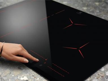 Pure disain: välja lülitatud pind on täiesti must, ilma nähtavate märgistuste või nuppudeta, mistõttu seade sulandub ideaalselt tööpinnaga.