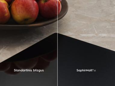 Vastupidi, SaphirMatti tekstuur on sõrmejäljekindel, seega näeb pliidiplaat alati puhas välja ilma pideva poleerimiseta.
