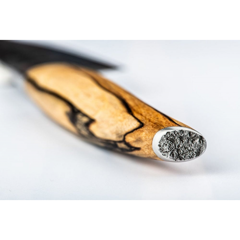 • Käepide – kaunilt valmistatud naturaalsest juurepuust („root wood“), täidetud vaiguga. Iga käepide on unikaalse värvi ja tekstuuriga, samuti on seda mugav käes hoida.