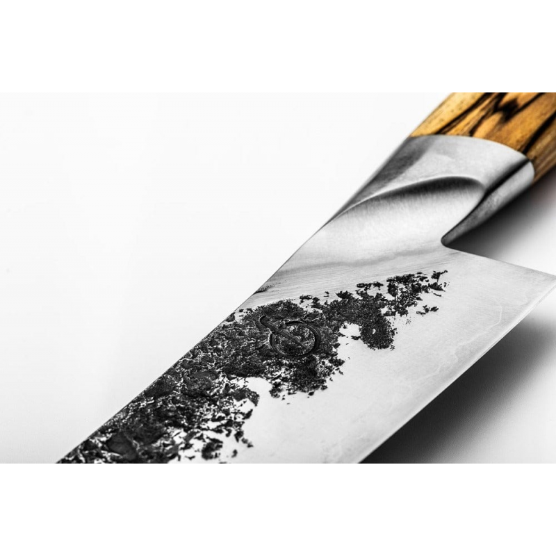 • Kasutatakse Jaapani VG10 terast, käsitsi valmistatud 5-kihilise tehnoloogia järgi – tagab vastupidavuse ja teravuse.