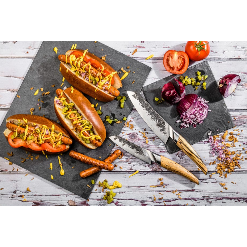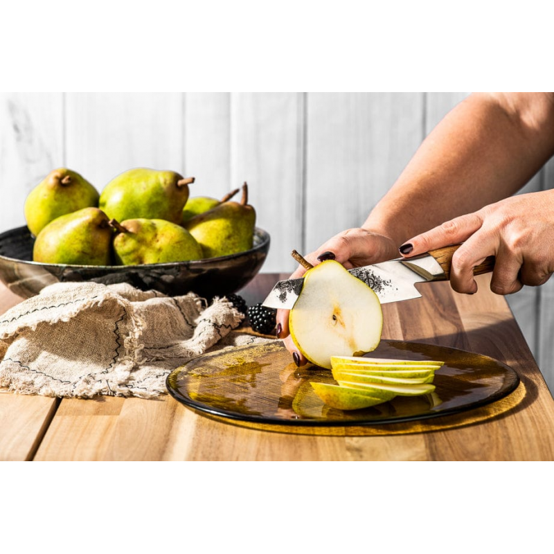 • Noa pikkus: 14 cm, laius: ~2 mm, 18° nurk – kompaktne Santoku formaat, ideaalne hakkimiseks, tükeldamiseks ja viilutamiseks.