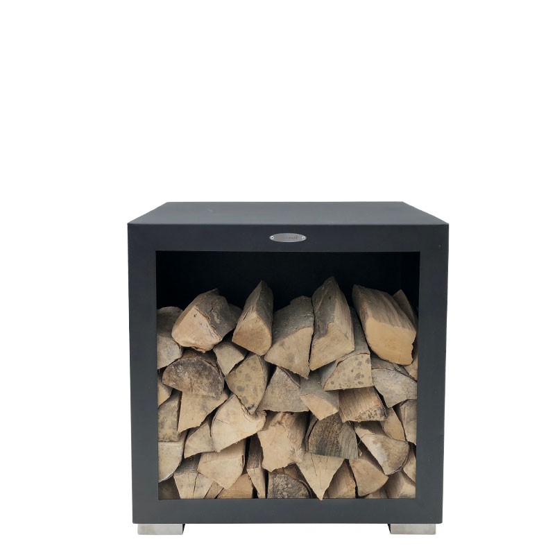 Remundi küttepuuriiul – kompaktne ja stiilne välitingimustes kasutatav küttepuude hoiuriiul, mis on valmistatud tugevast pulbervärvitud terasest ja roostevabast terasest detailidest. Kuubikujuline riiul mitte ainult ei aita hoida kaminas või grillil korda, vaid saab kaasaegseks väliala aktsendiks.
