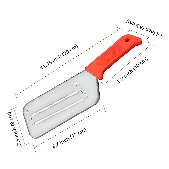 - Kahekordne efektiivsus: Riivil on kaks teravat roostevabast terasest tera, mis lõikavad ühe liigutusega rohkem toodet, seega peenestate kapsapea hetkega.