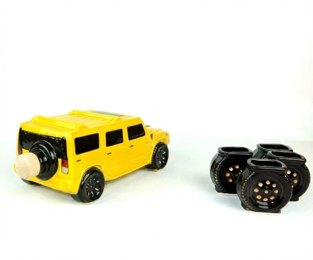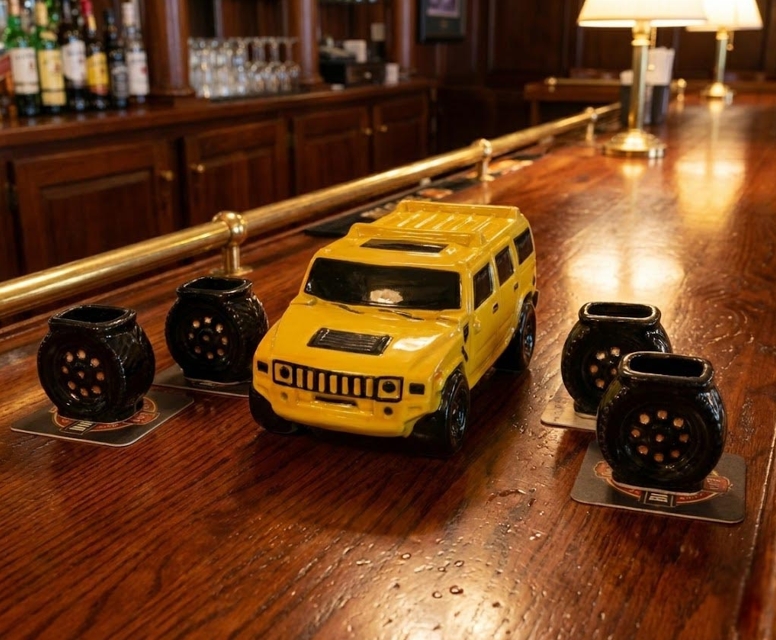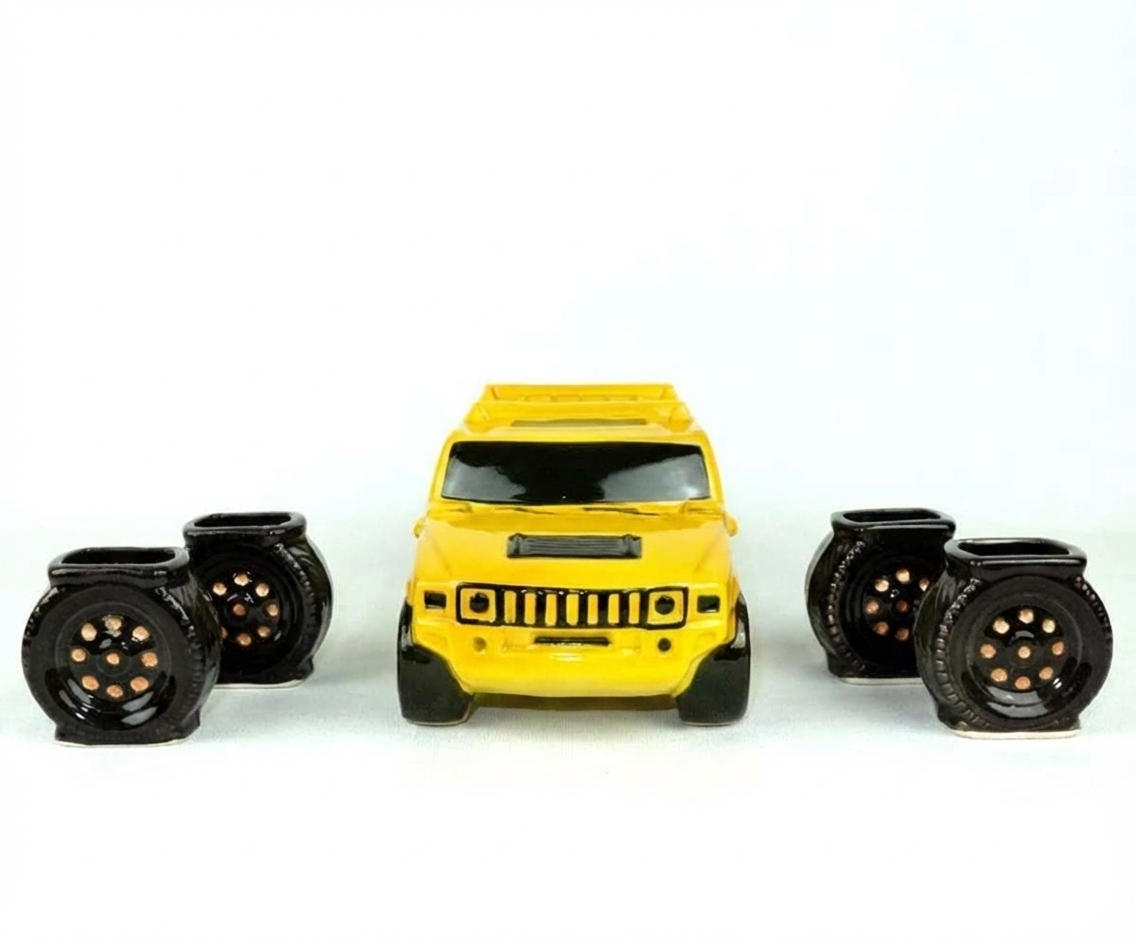 Tutvustame kinkekomplekti, mis on inspireeritud võimsast ja brutaalsest Ameerika maasturist “Hummer”. See kollane keraamiline auto ei kaunista mitte ainult teie baari, vaid saab ka peo peamiseks tõmbenumbriks. See on suurepärane valik neile, kes armastavad jõudu, suuri autosid ja eristuvat stiili.