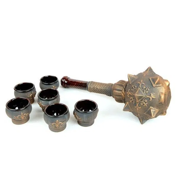 See originaalne komplekt on soliidne ja stiilne kingitus mehele, kes hindab ajalugu, jõudu ja originaalsust. Kuokos (nuia) kuju on iidne jõu ja võimu sümbol, mis on esitatud kui eksklusiivne interjööri aktsent. See on kingitus, mis saab kindlasti vestluste keskpunktiks ja kaunistab iga kodubaari, kabinetti või meeskonnaga koosviibimist.
