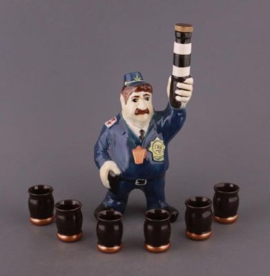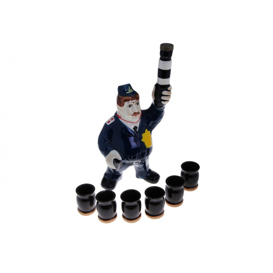 Komplekti kuulub originaalse kujuga pudel – politseiniku kujuke – ja kuus sellele sobivat pitsi. Tänu oma ainulaadsele välimusele ei ole see komplekt mitte ainult praktiline nõu külaliste kostitamiseks, vaid ka eriline interjööri detail või vestlusteema peo ajal.