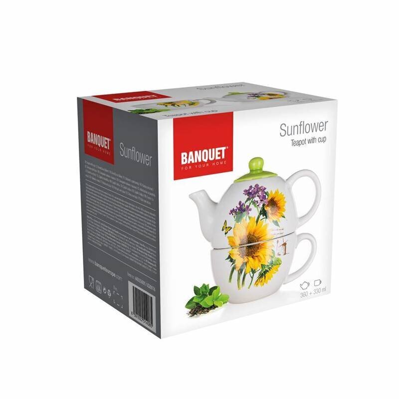 „Banquet“ keraamiline komplekt „Sunflower“ on suurepärane valik neile, kes armastavad nautida teerituaale üksinda. See „Tea for One“ (tee ühele) tüüpi komplekt ühendab funktsionaalsuse mängulise disainiga, tuues teie kööki suvevärve ja soojust.