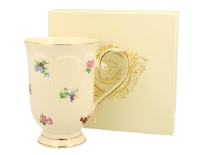 Klassikaline 450 ml keraamiline kruus, inspireeritud inglise traditsioonidest. Õrn ekru värvi taust on kaunistatud lillemotiivide ja kuldse äärega. Paks keraamikakiht hoiab kaua soojust. Pakendatud kinkekarpi.