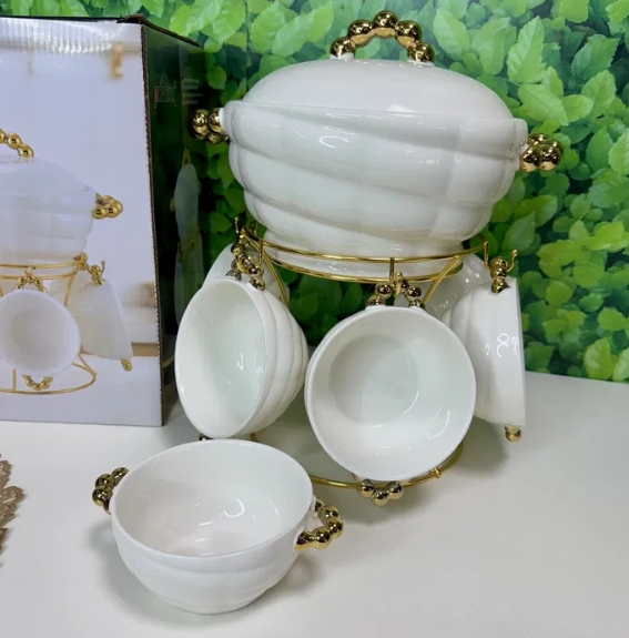- ✅ Täielik komplekt: Supikauss, 6 kaussi ja mugav alus – kõik ühes.