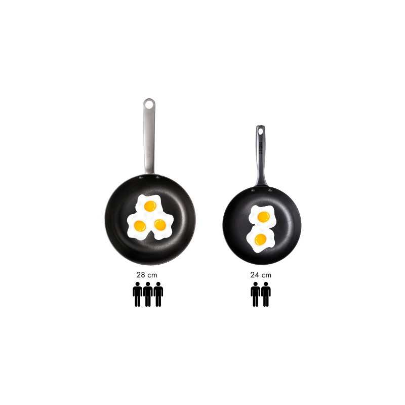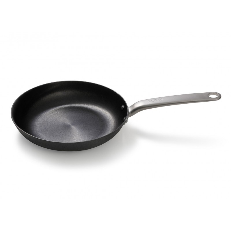 Pann kuumeneb kiiresti, mistõttu on väga oluline lasta sellel aeglaselt kuumeneda, et panni põhi ei deformeeruks. Selle panni käepide on õõnes, nii et see ei kuumene. Samuti talub see pann kõrget temperatuuri, mistõttu sobib suurepäraselt kala, liha, kartulite, pannkookide või röstsaiade praadimiseks. Pann on tugev, vastupidav ja sobib suurepäraselt kasutamiseks igal soojusallikal. Seda panni saab kasutada induktsioonpliidil, lahtisel tulel või ahjus (kuni 250 ℃).