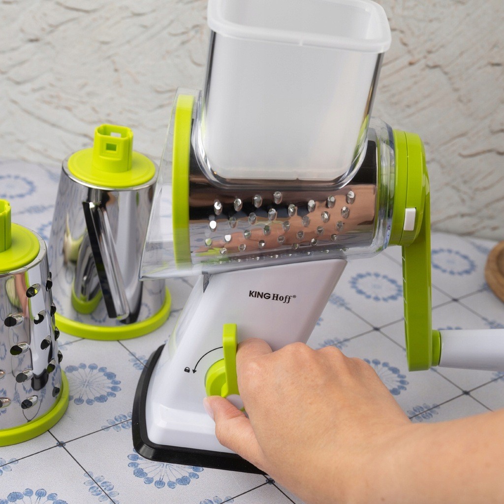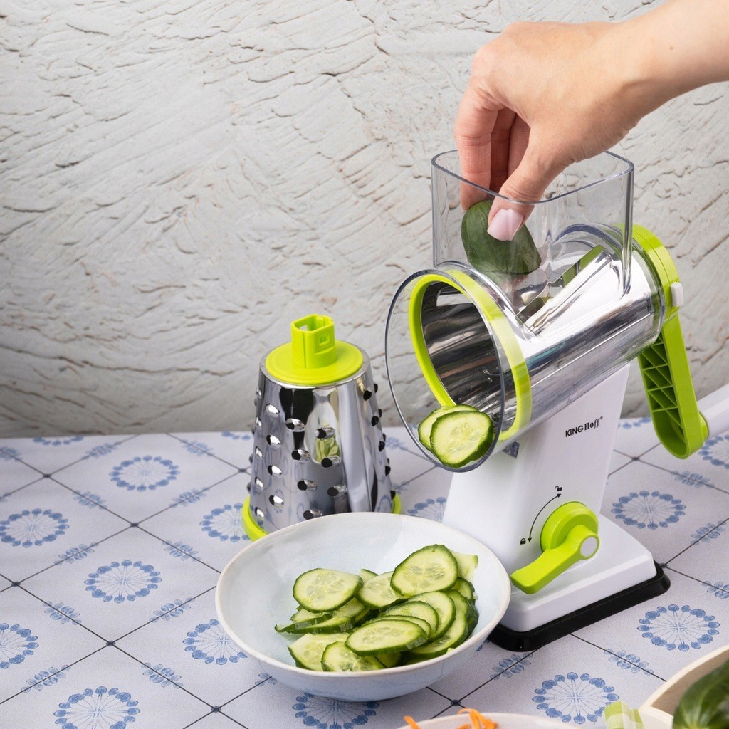 Lihtsustage oma igapäevast toiduvalmistamist KING Hoff KH-1960 käeshoitava lõikuri/riiviga! See on multifunktsionaalne tööriist, mis aitab teil kiiresti ja vaevata valmistada köögivilju, puuvilju ja juustu. Ideaalne koduköökidele, restoranidele, sööklatele ja igale toiduvalmistamishuvilisele!