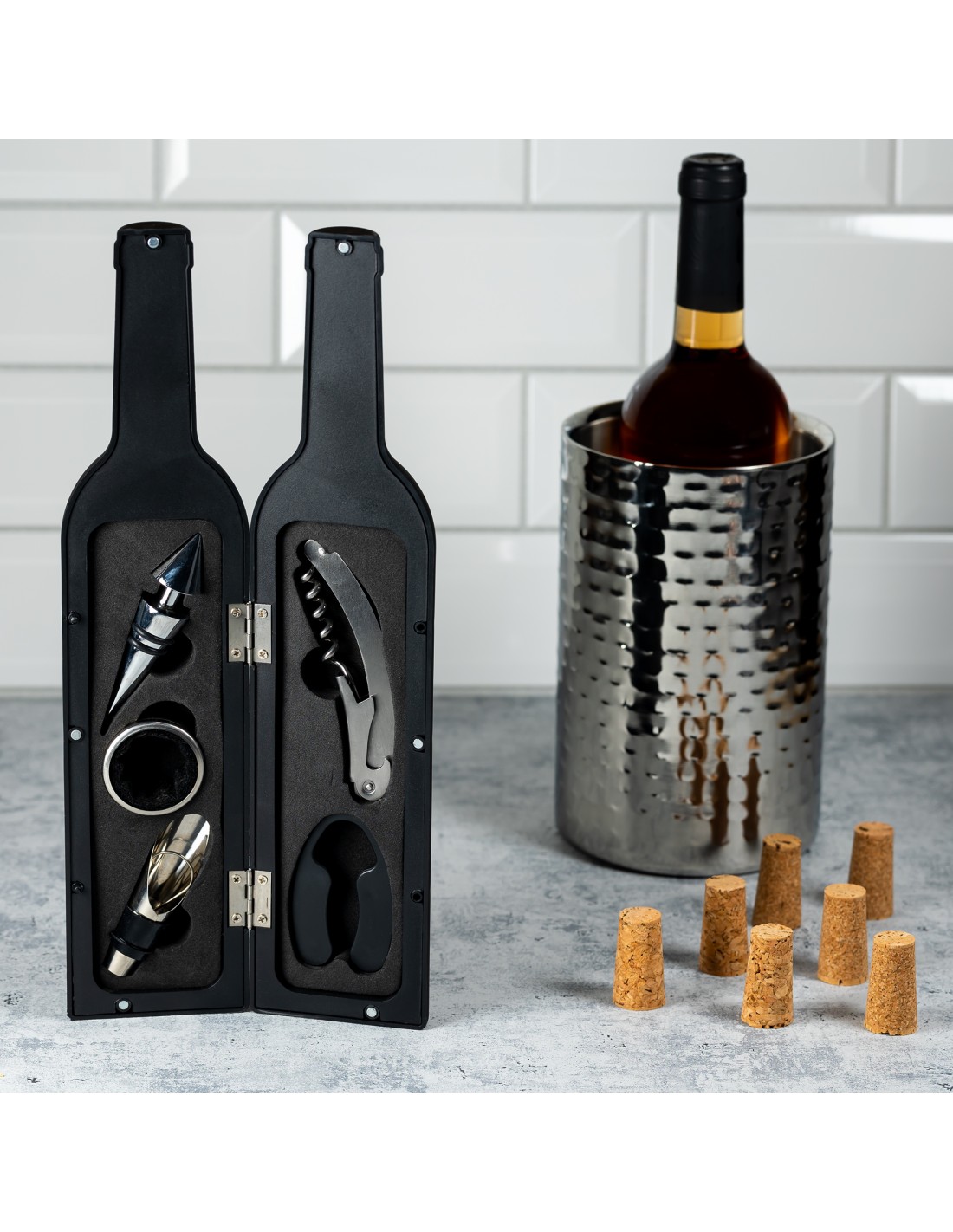 Komplekt sisaldab 5 põhilist tarvikut, mis on valmistatud roostevabast terasest ja vastupidavast plastikust. Alates fooliumi eemaldamisest kuni elegantse valamiseni ja ülejäänud joogi säilitamiseni – see komplekt tagab sujuva protsessi algusest lõpuni.