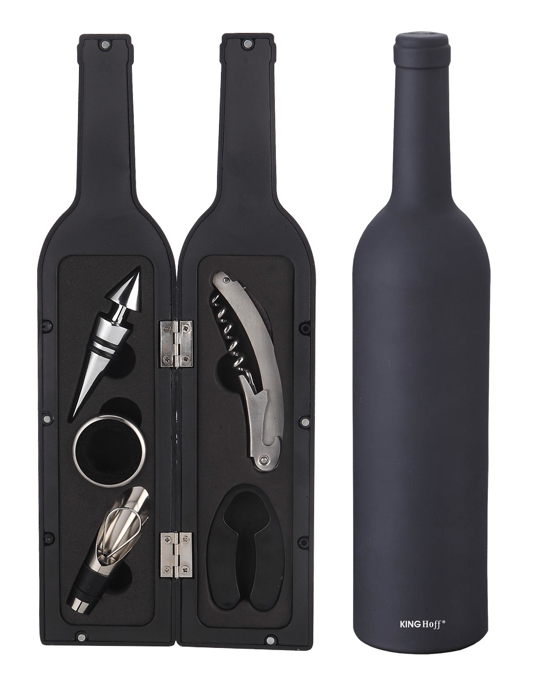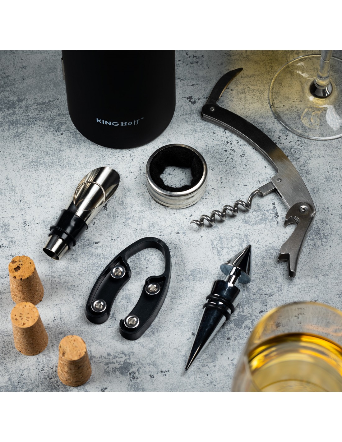 Üllata külalisi või tee suurepärane kingitus veinisõbrale selle originaalse “KingHoff” komplektiga. Esmapilgul näeb see välja nagu elegantne, matt veinipudel, kuid avamisel avaneb terve professionaalsete sommeljeede tööriistade arsenal. See on suurepärane stiili ja praktilisuse kombinatsioon, mis kaunistab iga baari või pidulauda.