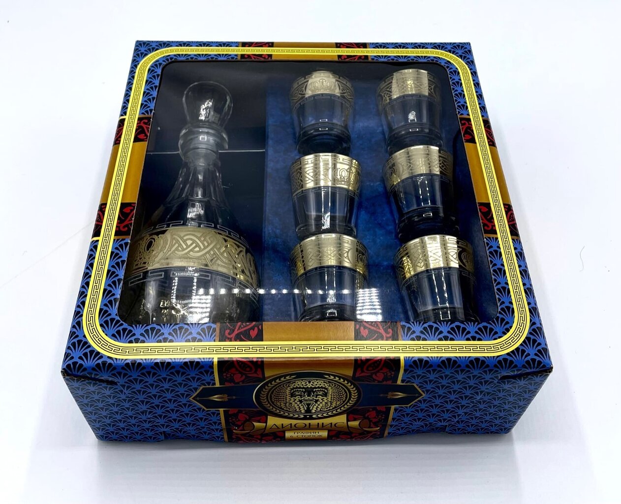 - Komplektsus: Komplekti kuulub üks mahukas karahvin tiheda klaaskorgiga ja 6 pitsi kangetele jookidele.