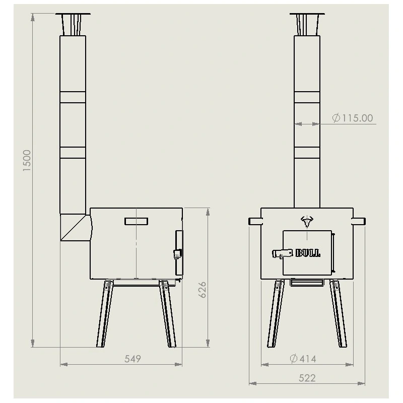 Originaal kokkupandav ahi korstnaga „Bull 12 ECO+“ (12-16 l pada jaoks). |