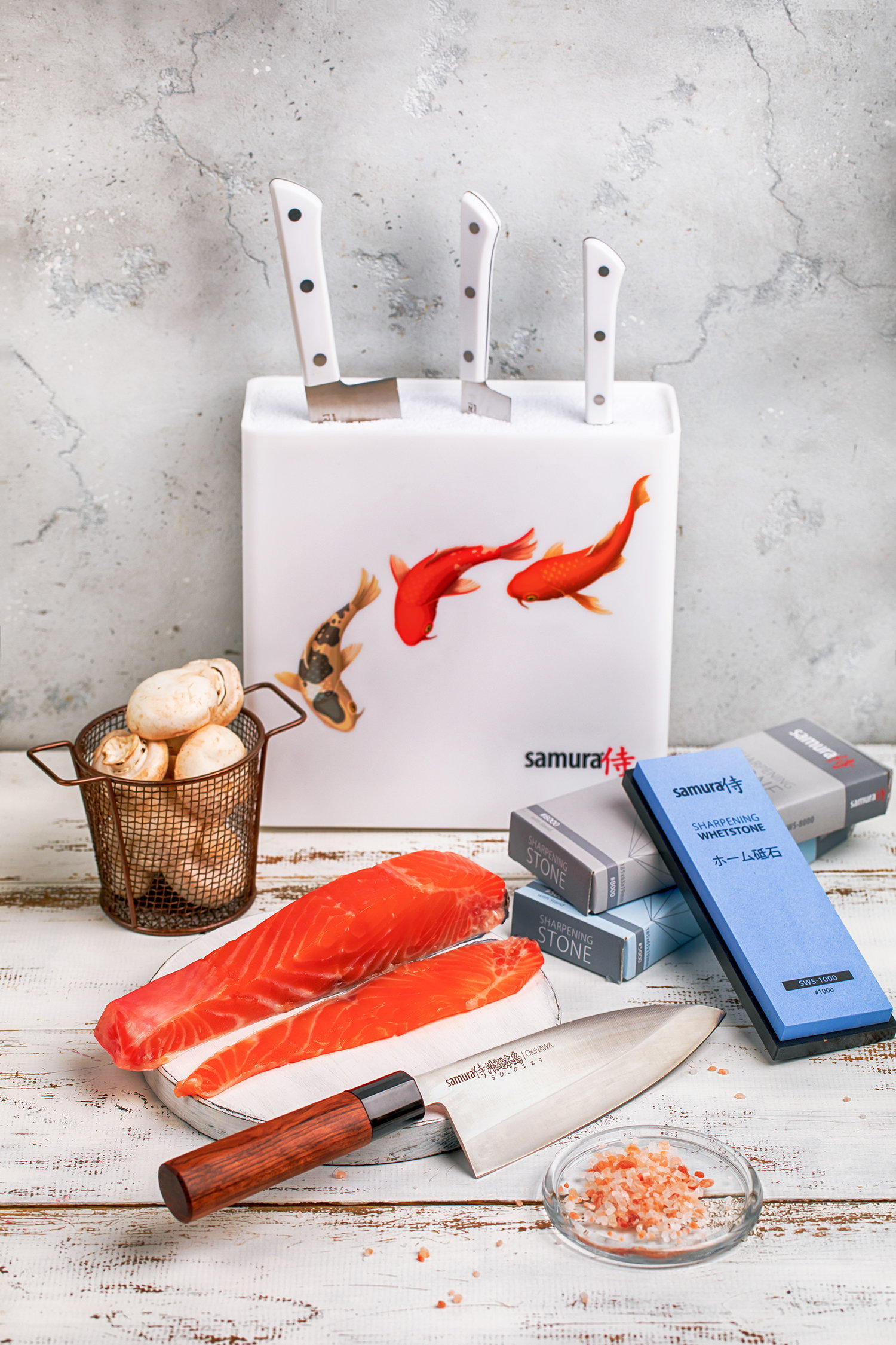 Usaldusväärne ühepoolne tera on valmistatud AUS-8 terasest ning käepide on valmistatud naturaalsest puidust (palmipuust) ning lõiketerast eraldatud tugi on professionaalsete kokkade jaoks oluline element.
