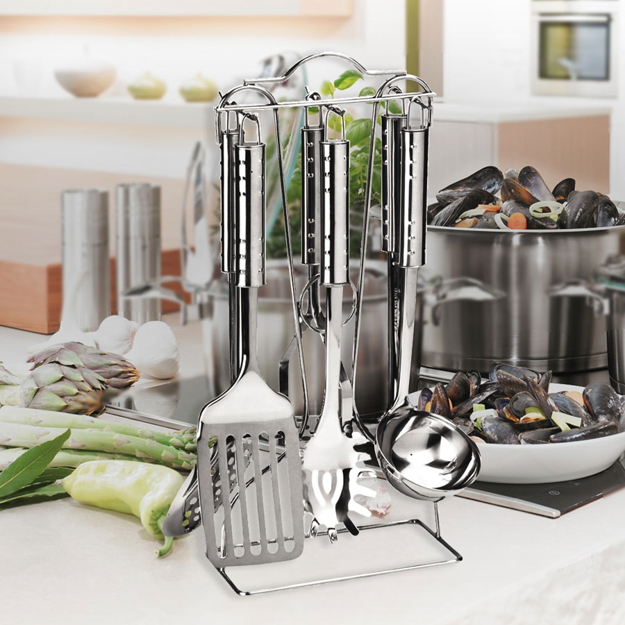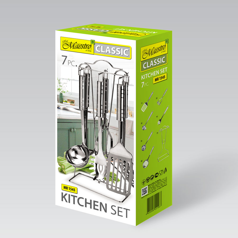 Komplekti kuuluvad: spaatel, kartulipuder, kulp, lusikas, alus, spagetilusikas, kastmepaat