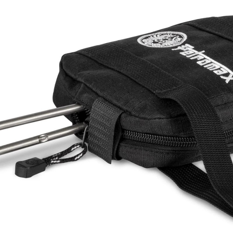Petromax transpordikott on lihtne ja mugav viis Petromax malmist võileivaraua paigutamiseks ja hoiustamiseks. Kott on valmistatud vastupidavast ripstop-kangast ja tikitud Petromax logoga. Koti sees on üks lukuga tasku ja kaks lükandtaskut, mis pakuvad ruumi erinevatele tarvikutele.