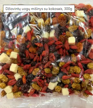 | Koostis | Jõhvikad, goji marjad, mooruspuu, kookoskuubikud |