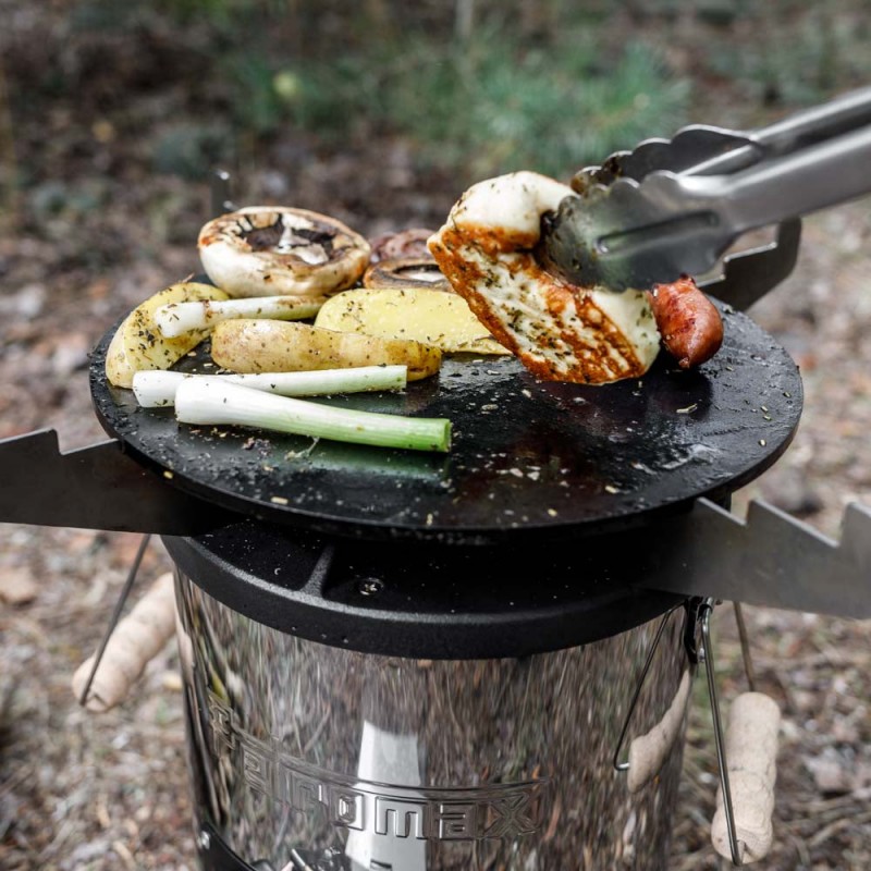 Küpsetusplaat on suurepärane lisavarustus Rocket Stove pliidile. Plaadi peal saate probleemideta küpsetada mahlast liha, kala ja köögivilju. Tänu Rocket Stove pliidi koldale kuumeneb see kiiresti – metallist rist toetab õhu ringlust, et soojus jaotuks ühtlaselt. Kuumutatud plaadil saate luua loomuliku mittenakkuva pinna efekti ja saavutada maitsva röstitud toidu maitse.