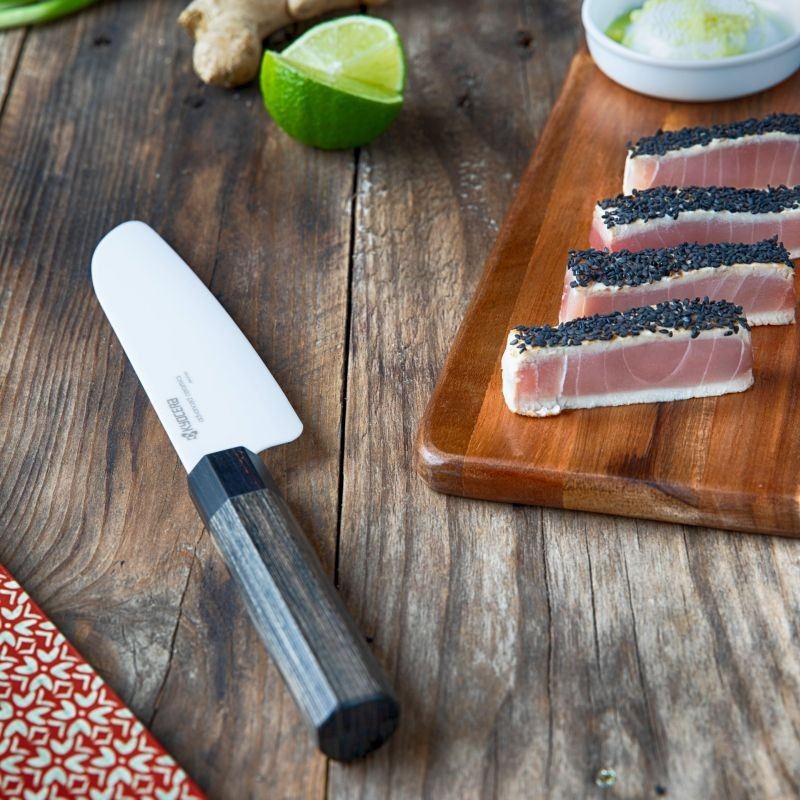 Austusest inspireerituna Iga-Fuji pühapaiga vastu lõi Kyocera Fuji nuga seeria. Disain on traditsioonide ja kaasaegsuse harmooniline sulam, see nuga muudab toiduvalmistamise naudinguks. Käsitööna valmistatud kaheksanurkne polümeeripuidust käepide on ideaalselt tasakaalustatud, ületamatud tsirkooniumoksiidi terad on eriti teravad ja säilitavad teravuse kuni 10 korda kauem võrreldes terasnugadega. See nuga ei roosteta, on eriti kerge ning lihtsasti puhastatav.