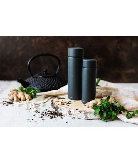 Lekkekindel Twist-Top keeratav kork tagab, et joogid ei valgu välja. Ergonoomiline kuju sobib mugavalt kätte ning tumehall värv annab elegantse, minimalistliku välimuse, mis sobib nii töö- kui ka vabaaja stiiliga.