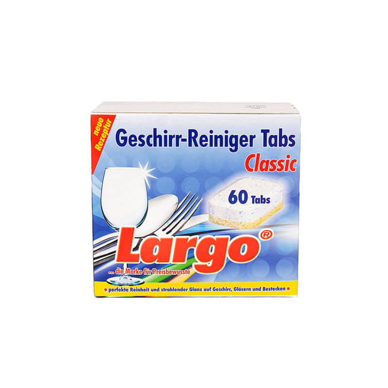 LARGO Classic on ajatu ja ökonoomne lahendus veatult puhaste nõude jaoks. Need klassikalise koostisega tabletid on loodud igapäevase mustusega tõhusaks võitlemiseks: need lahustavad suurepäraselt rasva ning koostises sisalduvad ensüümid ja hapnikupõhine valgendaja aitavad eemaldada isegi kinnikuivanud toidujääke ning tee- või kohviplekke.