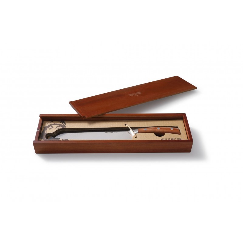 Nuga on pakendatud luksuslikku puidust karpi, mis sobib ideaalselt kingituseks nii kodukokkadele kui ka professionaalidele.