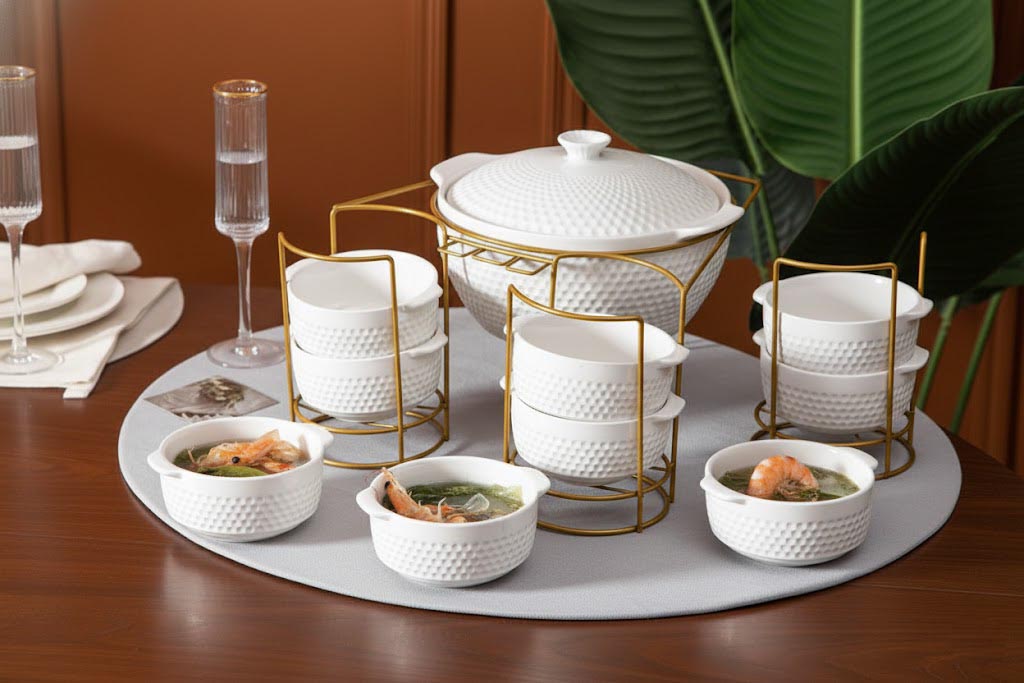Komplekt on mõeldud kuumade suppide, puljongite, hautiste või isegi külmade jookide (nt punši) serveerimiseks. Ideaalne pidulikuks laua katmiseks.