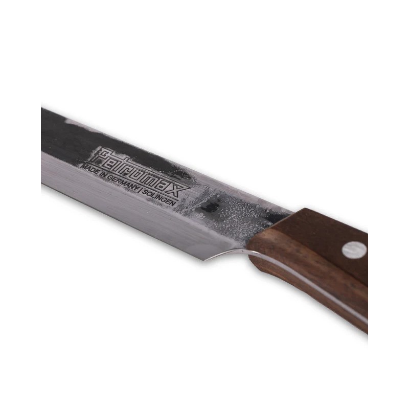 Petromax 24 cm lõikenuga on kvaliteetne käsitööriist, mis sobib ideaalselt liha, kala ja puuviljade lõikamiseks. See nuga on valmistatud Saksamaal Solingenis, mis on tuntud oma noavalmistamise traditsioonide poolest. Roostevabast terasest tera ja ergonoomiline pähklipuust käepide tagavad suurepärase juhitavuse ja mugavuse.