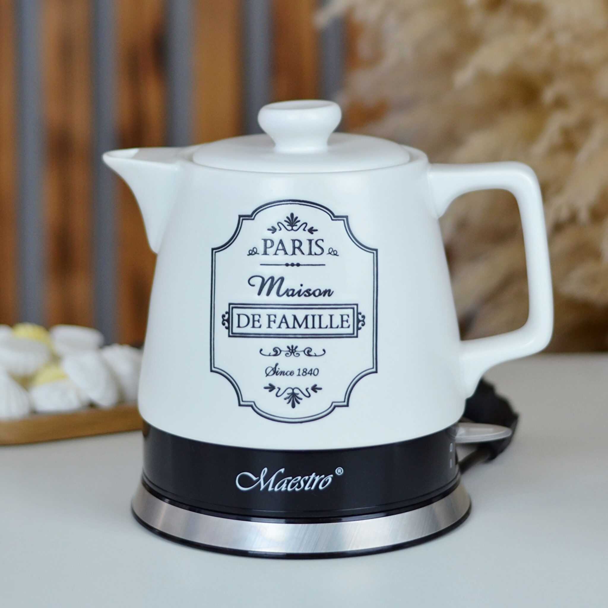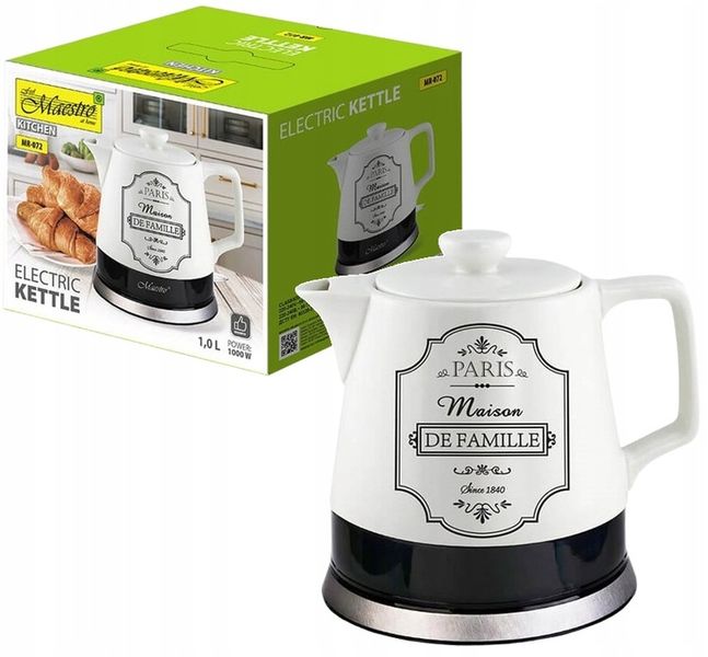 Maestro “Paris” seeria veekeetja on ainulaadne kombinatsioon stiilist ja funktsionaalsusest. Elegantne, kvaliteetne keraamiline korpus, kaunistatud Pariisi-teemaliste kirjadega, mitte ainult ei keeda vett usaldusväärselt, vaid saab ka teie köögi tõeliseks kaunistuseks, andes sellele harmooniat ja hubasust.