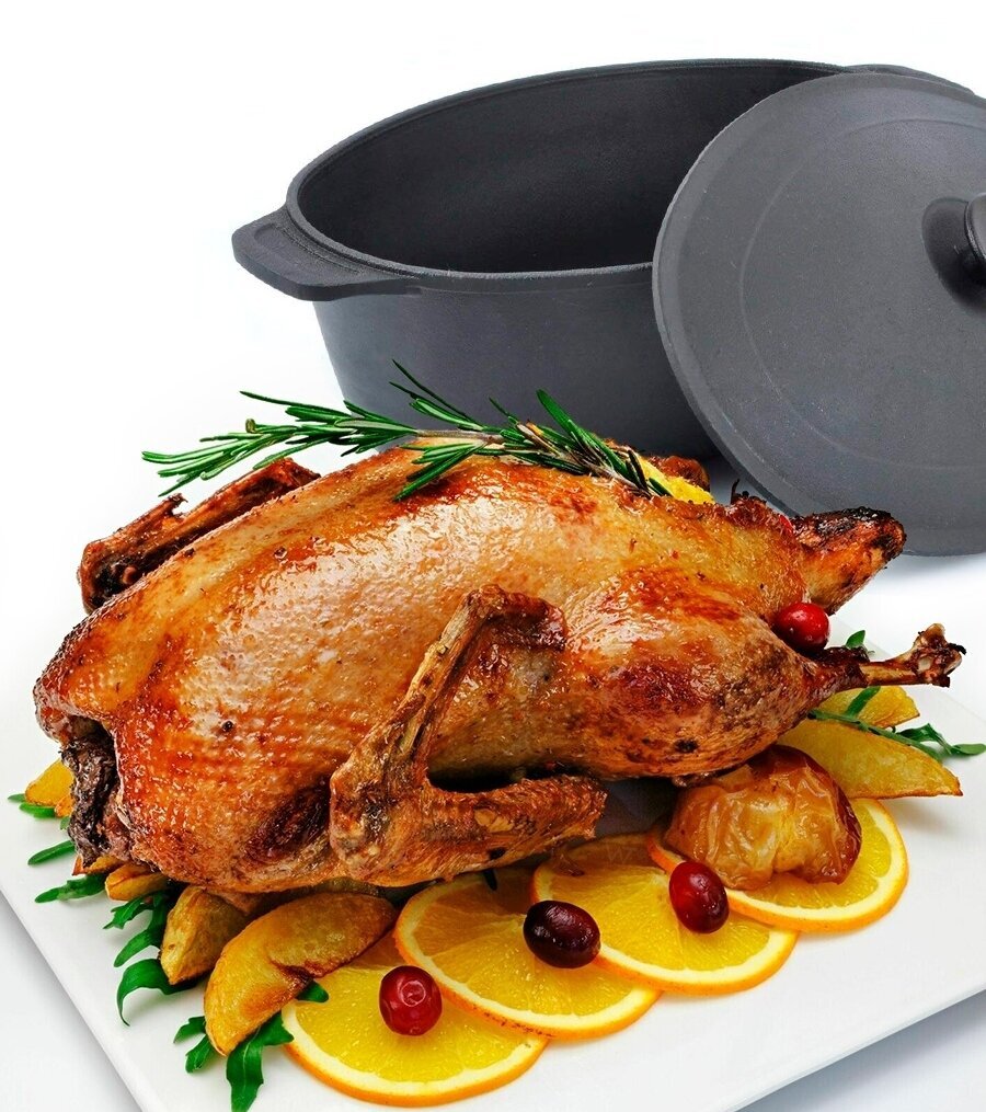 - Loomulik maitse: Malmpotis valmistatud toit säilitab kõik kasulikud omadused, loomuliku aroomi ja mahlakuse. See on parim valik terve linnu (nt pardi või kana) küpsetamiseks.