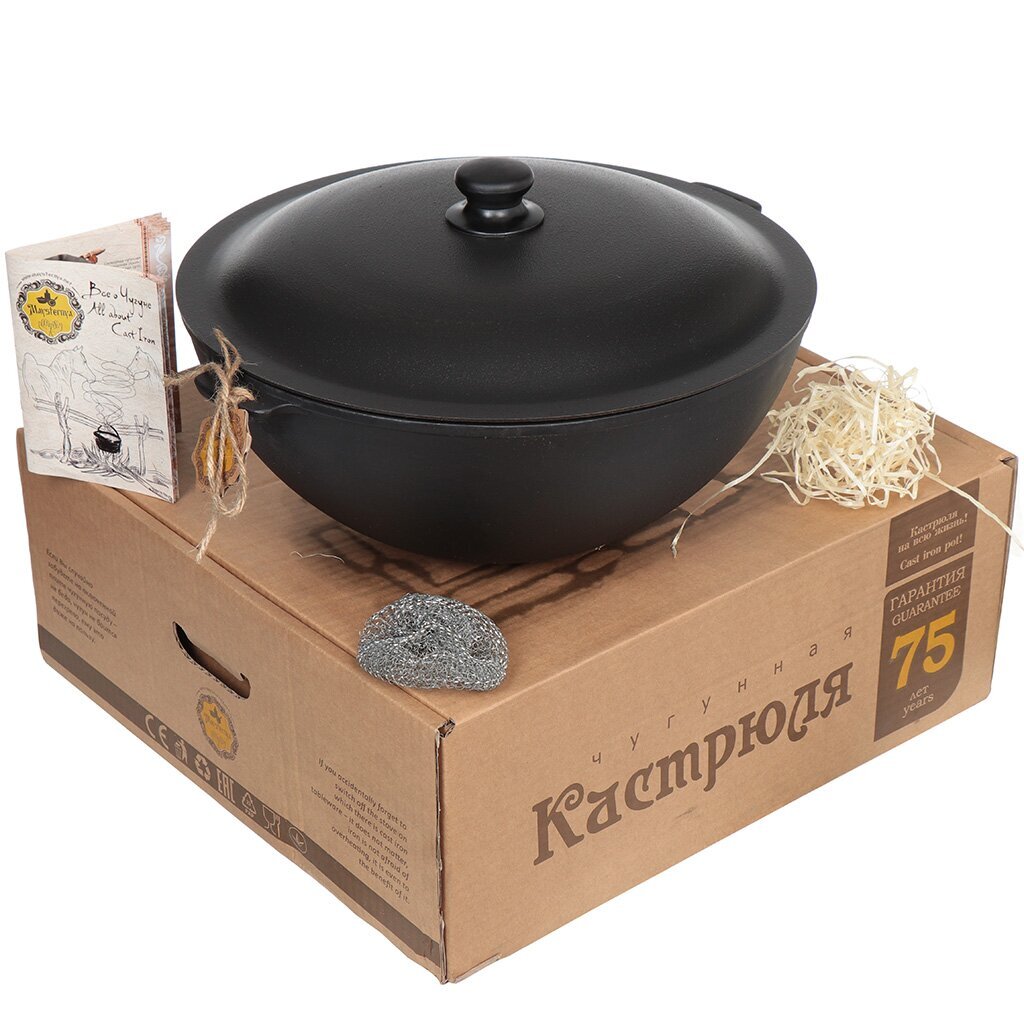 See 8-liitrine malmist kazan on asendamatu nõu tõelise plovi, hautiste ja traditsiooniliste Aasia roogade valmistamiseks. Valmistatud kvaliteetsest malmist Ukrainas (Biol/Tatar), tagab see, et toit mitte ainult ei kõrbe põhja, vaid omandab ka erilise, rikkaliku maitse.