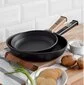 26 cm pann on kõige universaalsem: sellesse mahuvad suurepäraselt mitu praadi, suur portsjon hautatud köögivilju, praetud kartulid kogu perele või suur kook/vormiroog ahjus.