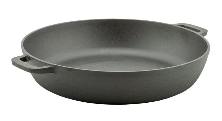 See massiivne 34 cm läbimõõduga malmpann-küpsetusvorm tootjalt „Brizoll“ on loodud neile, kes teevad palju ja maitsvat süüa. Tänu kahele valatud käepidemele külgedel (ühe pika asemel) on see nõu ahjus äärmiselt kompaktne ja mugav toidu serveerimiseks otse lauale.