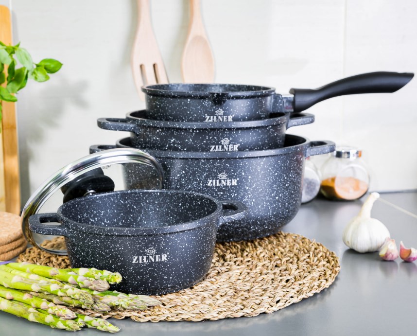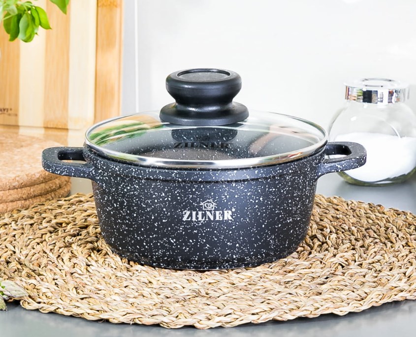 Komplekti kuulub kolm “Aroma Knob” käepidemega klaaskaant, millesse on sisestatud dosaator, tänu millele saate praadimisel või hautamisel lisada rasvaseid või vedelaid vürtse. Kaaned on valmistatud kuumakindlast klaasist ning nende läbipaistev kuju võimaldab toiduvalmistamise protsessi vabalt juhtida. ZILNER ZL-7016 komplekti iga osa saab pesta nõudepesumasinas, mis säästab teie aega.