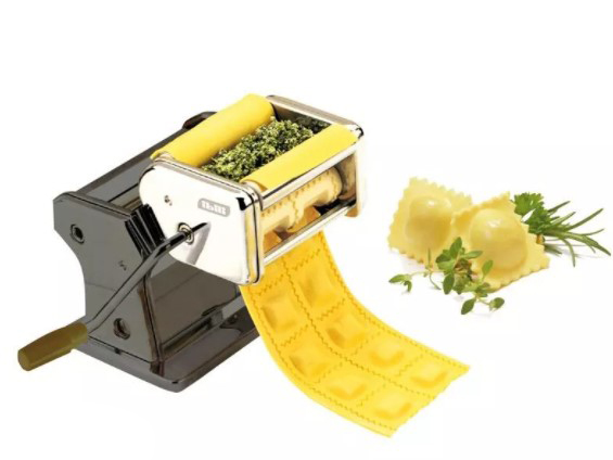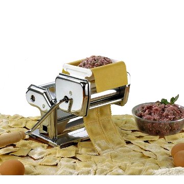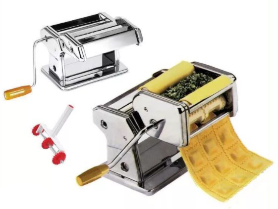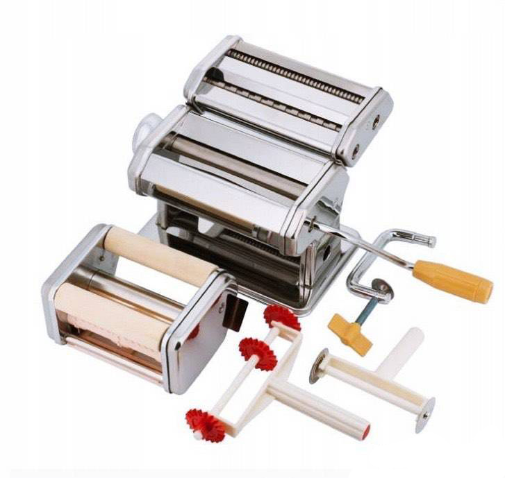 Kvaliteetne roostevabast terasest masin pasta, spagettide, ravioolide valmistamiseks • Saab taigna rullida 15 cm laiuseks ja reguleeritava paksusega (9 paksuse seadistust 0,3 mm kuni 3 mm). kinnitage kaasasoleva klambriga lauale või tööpinnale. • Lihtne kasutada ja puhastada. • Komplektis on nuga taigna soovitud laiuseks lõikamiseks. • Mõõdud: 20 cm x 20 cm x 15 cm • Komplekti kaal: ca 3,5 kg. • Täiesti uus kvaliteetsest terasest masin • Pastatööriist • Ravioolitööriist • Kaks terastööriista • Taignalõikur • Klamber/käepide lauale, tööpinnale Toode on täiesti uus, pakendatud originaalkarpi.