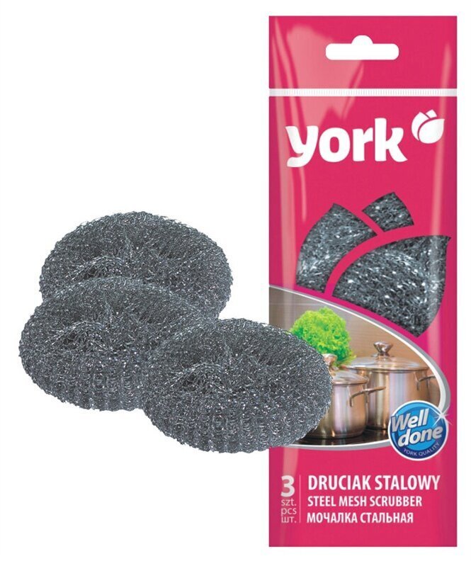 See “YORK” 3-osaline metallnuustikute komplekt on praktiline valik igasse kööki. See on asendamatu tööriist, kui on vaja jagu saada põhjakõrbenud rasvast, nõest või sisseimbunud toidust vastupidavatel pindadel.