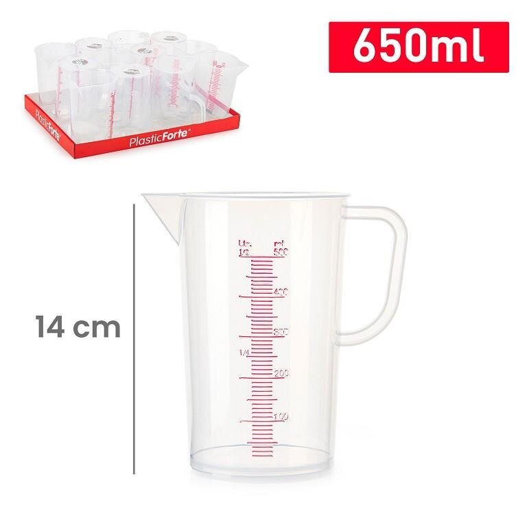 See 650 ml “PlasticForte” mõõtekann on vajalik tööriist igale perenaisele, kes hindab toiduvalmistamisel täpsust. Valmistatud Hispaanias, paistab see silma kvaliteedi ja mugavuse poolest, lihtsustades igapäevaseid köögitöid.