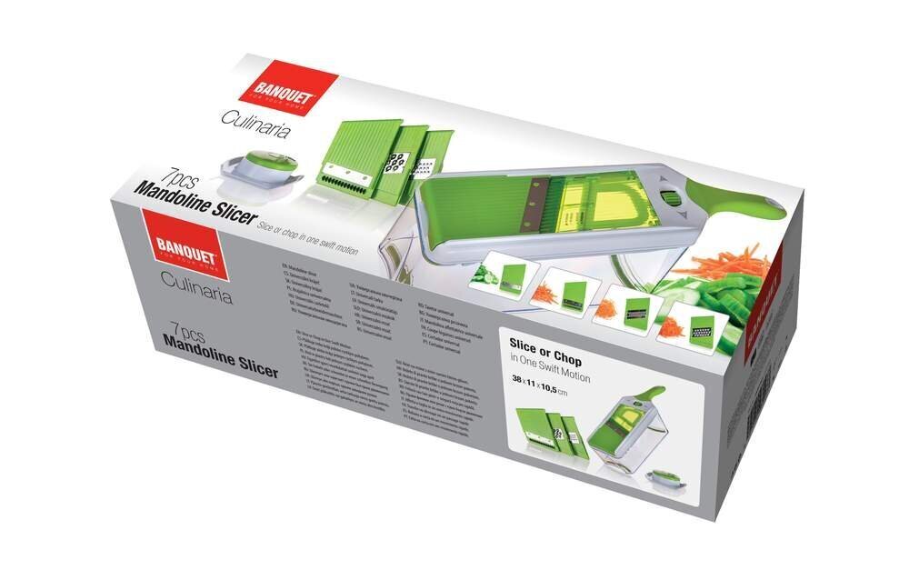 See “BANQUET” multifunktsionaalne riiv on kompaktne lahendus, mis asendab paljusid eraldi lõikamis- ja riivimistööriistu. Tänu 6 vahetatavale otsikule ja anumale on toiduvalmistamine kiire ja köök püsib puhas.
