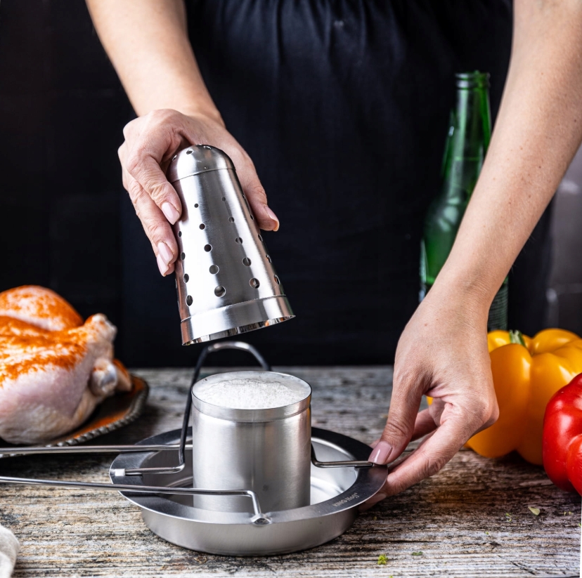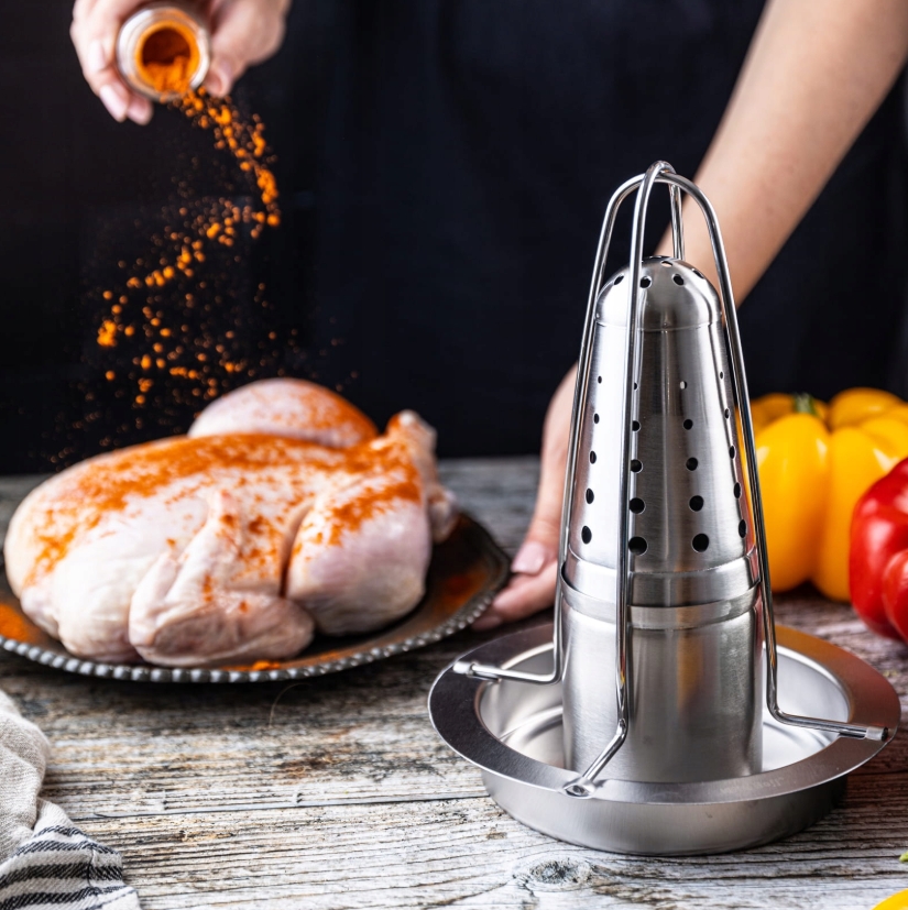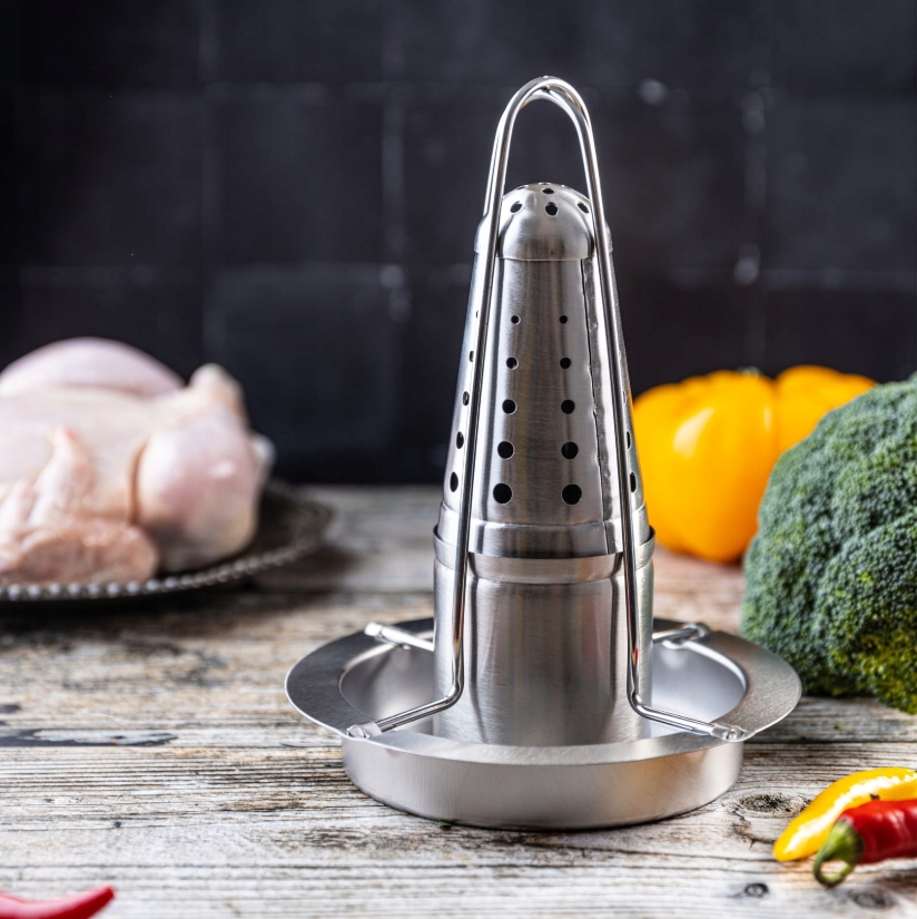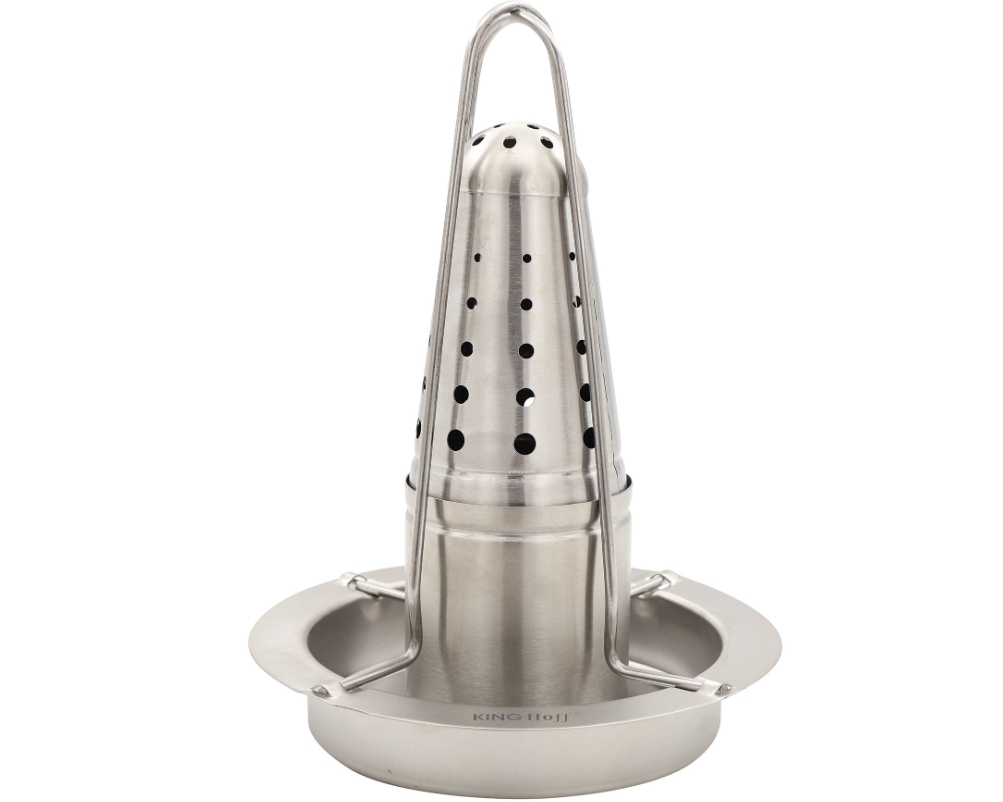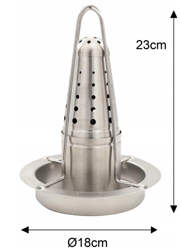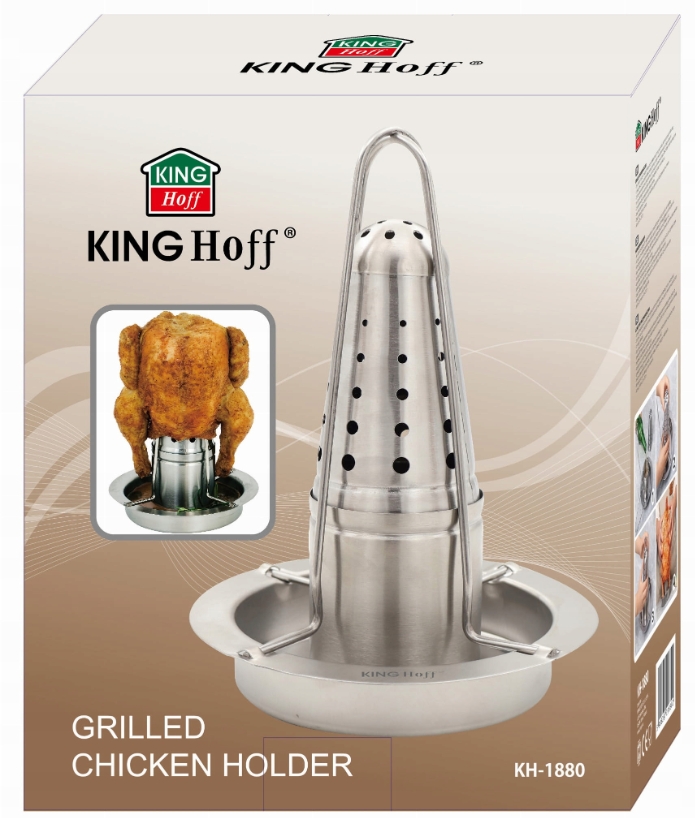 KINGHoff KH-1880 on praktiline ja tugev roostevabast terasest kanaalune, mis tagab ühtlase küpsetamise ja krõbeda naha. Eriti nõudlise nõu võimaldab lisada maitseaineid või vedelikke, andes kanale erilise maitse. Kanajalad kujustus koos aukudega jaotab aroome ning laseb lihal ühtlaselt küpseda.