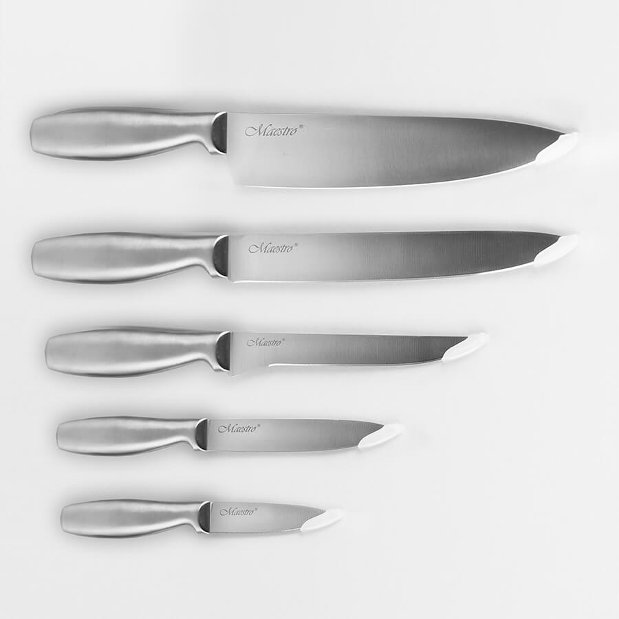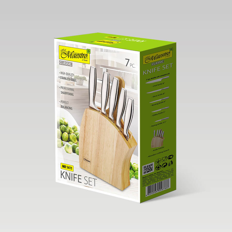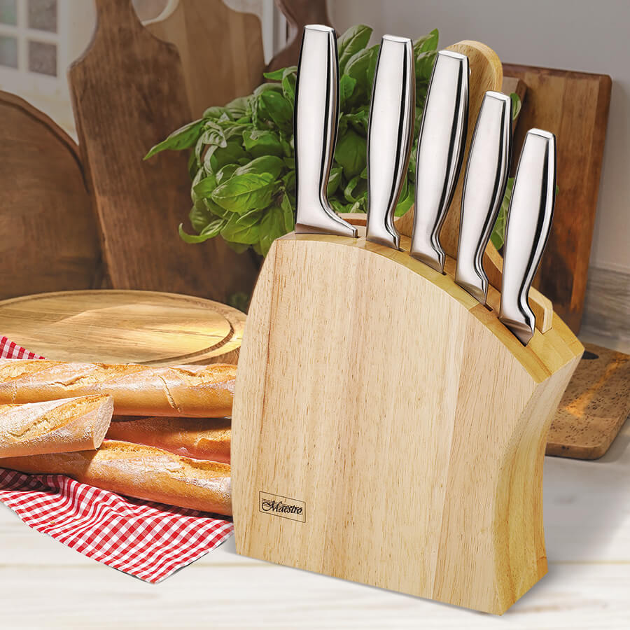 Nugade komplekt koos puidust alusega Maestro MR-1411 on silmapaistev köögiriist, mis võib rikastada teie köögikogemust ja pakkuda palju kasu. See komplekt sisaldab erineva suurusega noad, mis on sobilikud erinevateks köögitöödeks – alates lõikamisest ja tükeldamisest kuni riivimise ja viilutamiseni. Noaterad on valmistatud kvaliteetsest roostevabast terasest, seega need on teravad, vastupidavad ja pikaealised. Puidust alus kaitseb mitte ainult nugasid, vaid annab teie köögile ka elegantse ilme. See komplekt võib olla kasulik nii professionaalsetele kokkadele kui ka koduste köögi meistrite jaoks, võimaldades tõhusalt täita erinevaid ülesandeid köögis. Lisaks on see suurepärane kingiidee kõigile, kes hindavad kvaliteetseid köögitarbeid ja soovivad oma toiduvalmistamise kogemust parandada. Tugevad, teravad ja funktsionaalsed noad koos puidust alusega Maestro MR-1411 lisavad teie köögile professionaalsust, võimaldades teil hõlpsalt luua maitsvaid ja ilusaid roogasid.