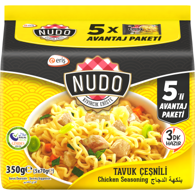 Tutvustame NUDO kiirnuudleid kanamaitsega säästlikus 5 pakendi suuruses! See on ideaalne lahendus peredele, üliõpilastele või lihtsalt kõigile, kellele meeldib, kui käepärast on kiire, soe ja mõnus eine. Nüüd jätkub Sinu lemmik klassikalist kanamaitset kauemaks. Iga 70g pakk on valmis vaid 3 minutiga, andes Sulle vabaduse improviseerida ja rikastada rooga oma lemmik lisanditega.