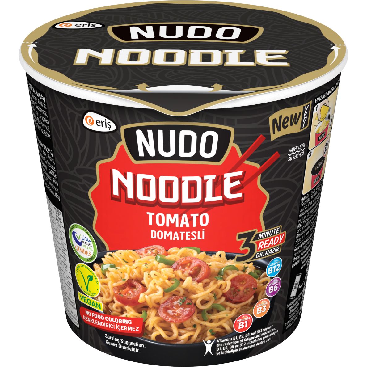 Tutvustame NUDO kiirnuudleid tomatitega – ideaalne lahendus kaasaegsele, kiire elutempoga inimesele. Unusta pikk toiduvalmistamine ja mäed määrdunud nõusid. See mugav tops peidab endas maitsvaid nuudleid ja rikkaliku maitsega maitseaineid, mis kõigest 3 minutiga muutuvad kuumaks ja kosutavaks roaks. See on suurepärane valik lõunapausiks kontoris, kiireks õhtusöögiks kodus või lihtsalt siis, kui soovid midagi sooja ja lohutavat.
