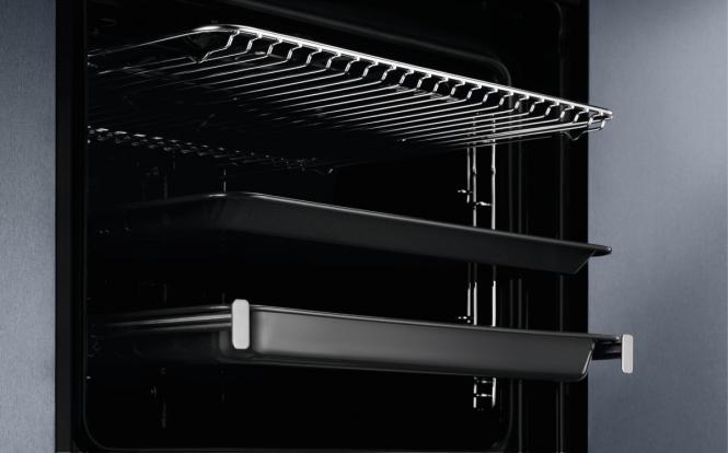 Iga detail on loodud teie mugavuse jaoks. Velvet Closing™ tehnoloogia tagab, et uks sulgub alati aeglaselt, vaikselt ja pehmelt. Ja teleskoopsiinid võimaldavad teil mugavalt ja ohutult välja tõmmata kuumad ahjuplaadid, et saaksite rooga kontrollida või maitsestada.