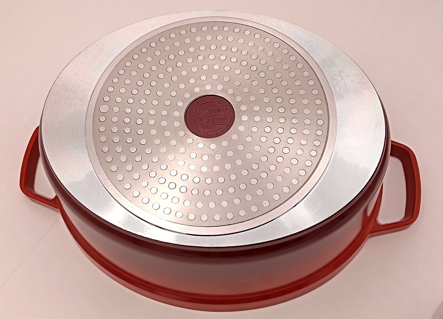 - Valatud alumiinium: Pott on valmistatud kvaliteetsest valatud alumiiniumist, mis tagab kiire kuumenemise ja ühtlase soojusjaotuse kogu pinnal. 5 mm paksune põhi kaitseb nõud deformatsiooni eest.