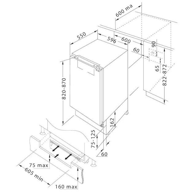 - Toote tüüp: Tööpinnale paigaldatav sügavkülmikuga külmik