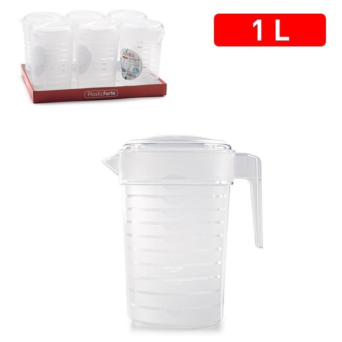 See “Plastic Forte” 1-liitrine kaanega kann on suurepärane lahendus igapäevaseks kasutamiseks. Valmistatud Hispaanias kergest ja vastupidavast plastist, sobib see suurepäraselt nii siseruumidesse kui ka väliterrassidele. Kaas pakub lisakaitset, hoides joogid puhtana.
