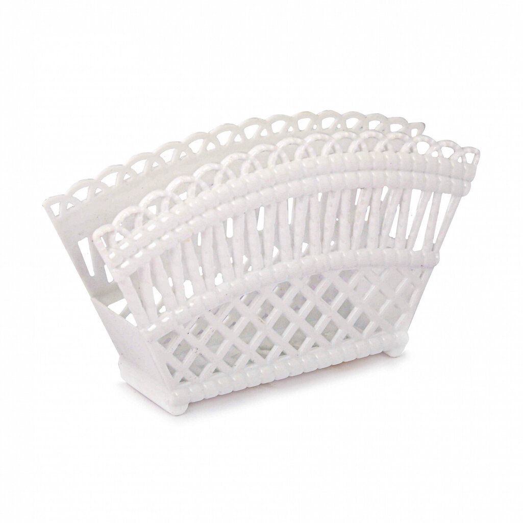 See valge plastist salvrätihoidja on lihtne, kuid elegantne lahendus laua katmiseks. Pitsiline muster, mis meenutab punutud korvi või pitsi, annab tootele kerguse ja esteetilisuse, mistõttu sobib see suurepäraselt nii kööki, aeda kui ka söögituppa.