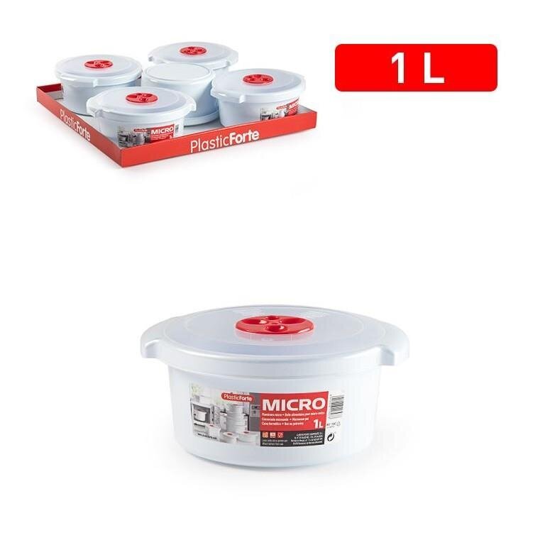 See 1-liitrine “Plastic Forte” MICRO seeria nõu on spetsiaalselt loodud teie lõunapauside lihtsustamiseks. Selle nõu peamine eelis on kaanesse integreeritud spetsiaalne klapp, mis laseb aurul soojendamise ajal väljuda, seega saate toitu soojendada ilma kaant eemaldamata.